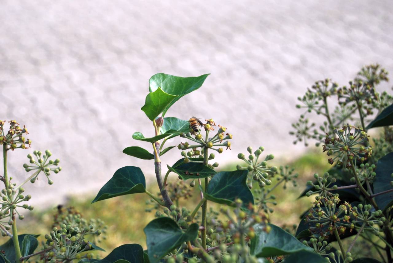 An einem sonnigen Novembertag ist in der Efeuhecke und in Staudenbeeten  ein reges Insektentreiben zu beobachten…
