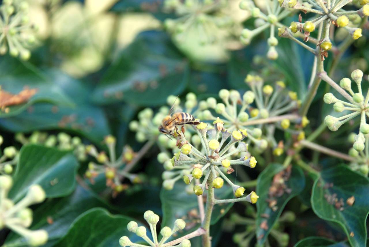 An einem sonnigen Novembertag ist in der Efeuhecke und in Staudenbeeten  ein reges Insektentreiben zu beobachten…